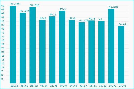 Fifty Two Week Low: 38.00