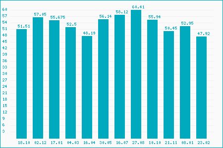 Fifty Two Week High: 58.75