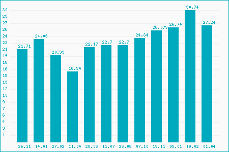 Fifty Two Week High: 29.70