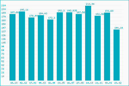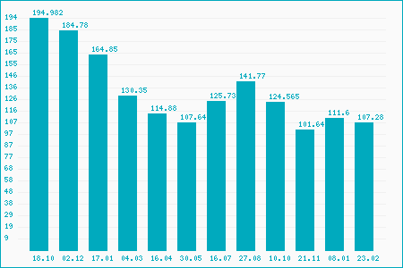 Fifty Two Week High: 185.48