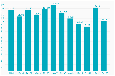 Regular Market Day Low: 13.02