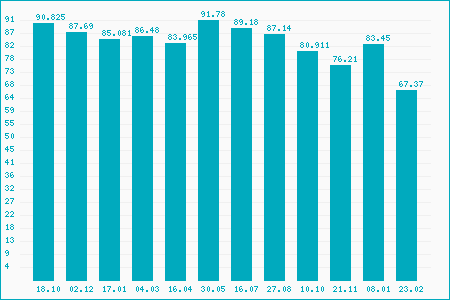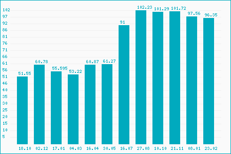 Fifty Two Week High: 96.68