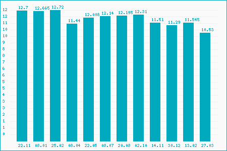 Fifty Two Week High: 12.67