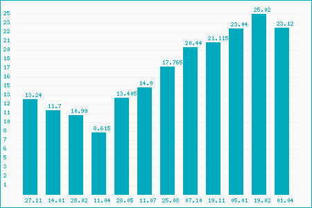 Fifty Two Week High: 25.50