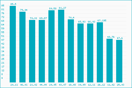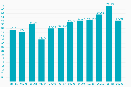 Fifty Two Week High: 73.70