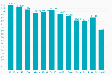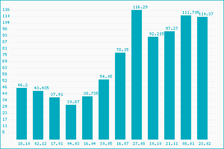Fifty Two Week High: 116.66