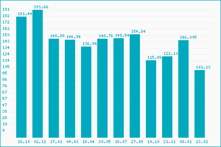 Fifty Two Week High: 144.65