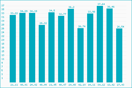 Regular Market Day Low: 33.32