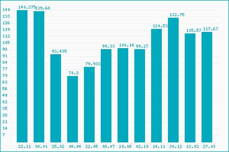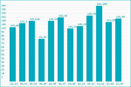 Fifty Two Week High: 142.25