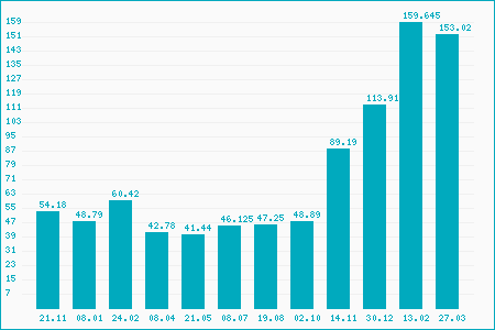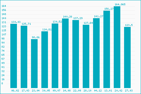 Fifty Two Week High: 164.02