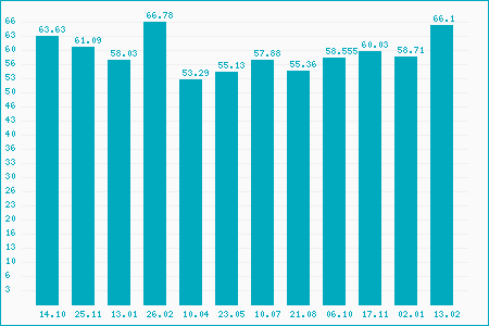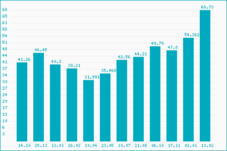 Fifty Two Week High: 69.70