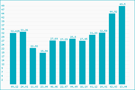 Fifty Two Week High: 45.29