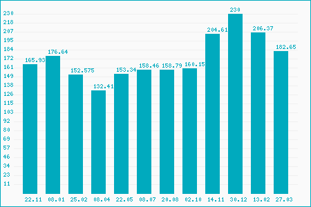 Fifty Two Week Low: 157.20