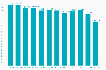 Fifty Two Week Low: 11.13