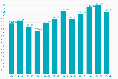 Fifty Two Week High: 112.54