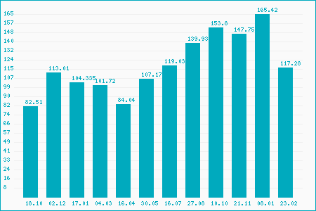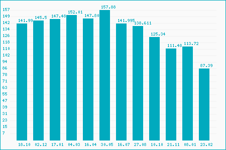Fifty Two Week High: 157.60