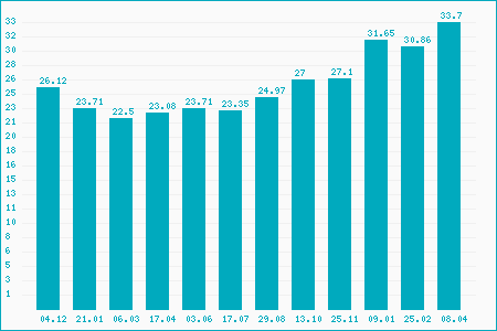 Rentokil Initial plc (RTO) Regular Market Day High: 34.09