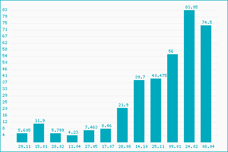 monday.com Ltd. (MNDY) Regular Market Day High: 70.00