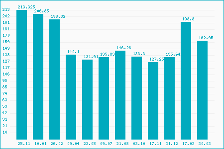 Fifty Two Week Low: 134.65